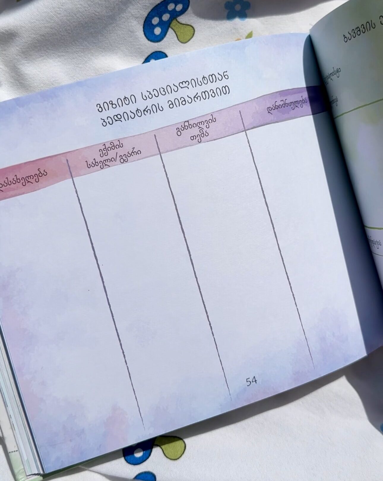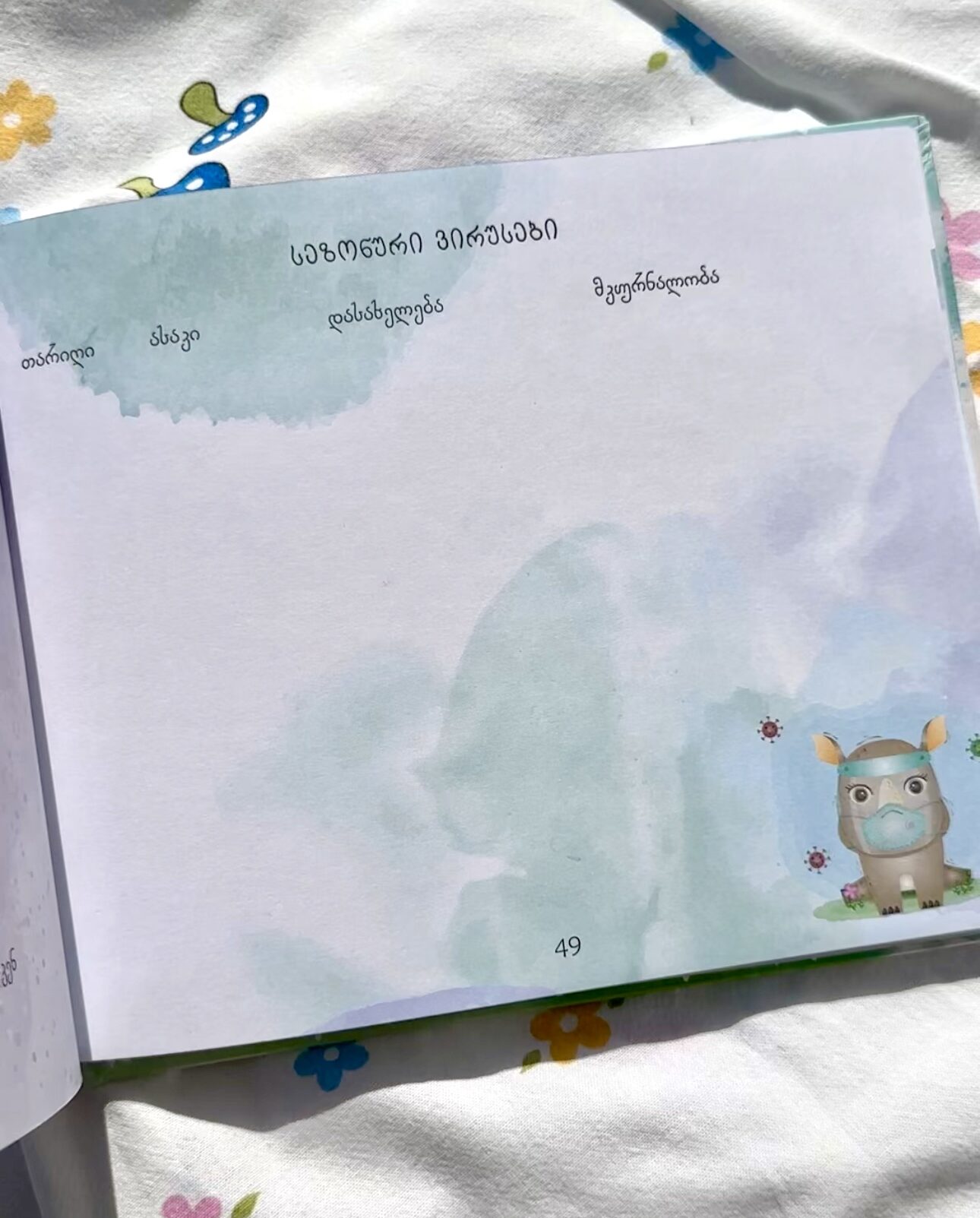 ეს დღიური დაგეხმარება ბავშვის შესახებ ინფორმაცია ორგანიზებულად, წლების მიხედვით შეინახო და საჭირო დროს მოიძიო სასურველი მონაცემები, მომავალში კი უკვე ზრდასრულ შვილს, გადასცე მისი ჯანმრთელობის ისტორია.